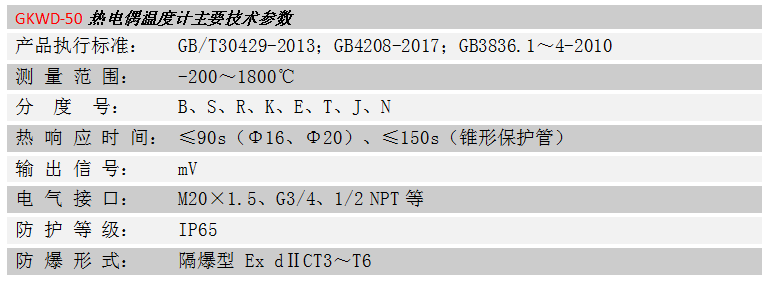 GKWD-50熱電偶溫度計(jì)是利用熱電效應(yīng)為原理測量多種生產(chǎn)過程中從-200~1800℃范圍內(nèi)的液體介質(zhì)、氣體介質(zhì)、蒸汽以及固體表面等的溫度,現(xiàn)已成為中高溫溫度遠(yuǎn)傳儀表的理想選擇。