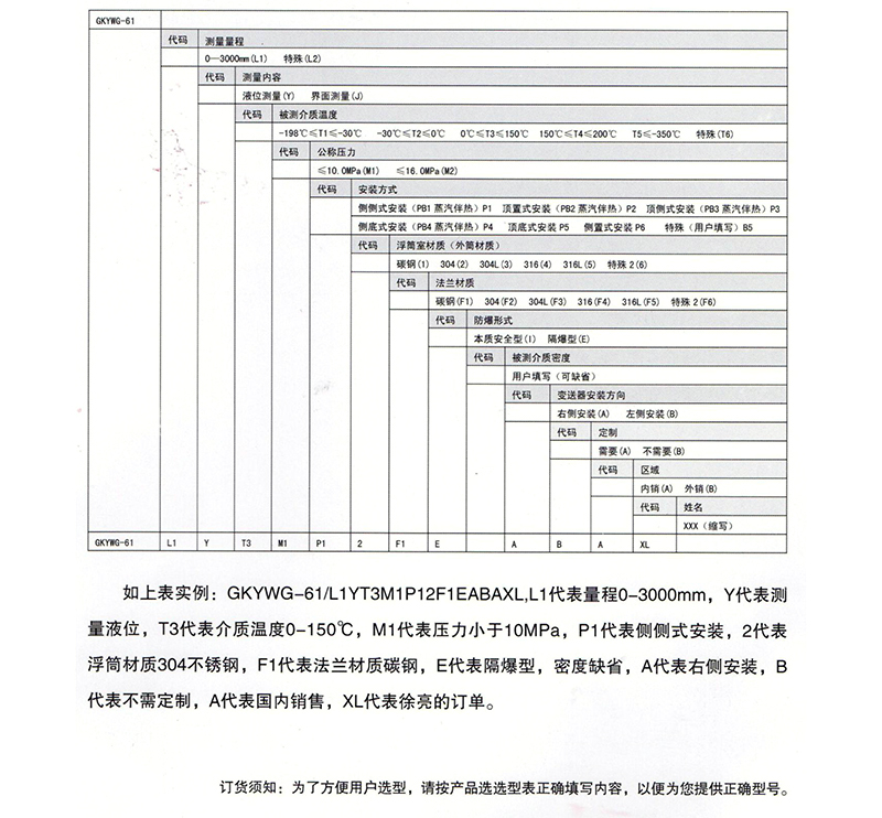儀表應優先選用標準的右側安裝,即面對儀表時儀表的位置應在外浮筒的右側,也可采用左側安裝。訂貨時不加說明,一律按右側安裝供貨。